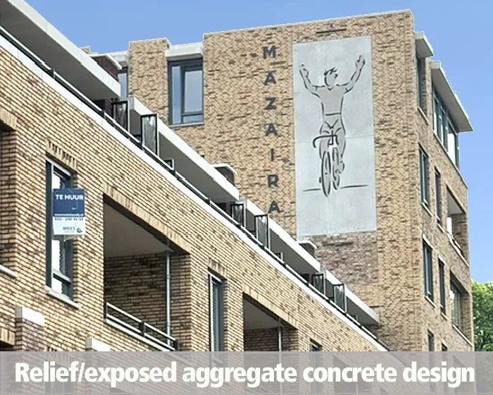 Mithilfe von zementverzögerndem Papier wird ein Design in Form einer Abbildung oder Text in den Beton eingearbeitet. Die Gestaltungsfreiheit mit zementverzögerndem Papier ist umfangreich; selbst kleine Details in Fotos werden im Beton sichtbar.