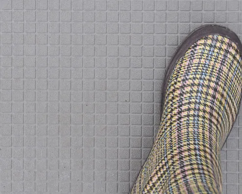 Die raue Oberfläche sorgt für eine bessere Griffigkeit bei Wasserglätte. Rillen zwischen den relativ kleinen Quadraten (12 x 12 mm) leiten das Wasser schnell ab. Durch die raue Struktur und die Wasserableitung wird dem Aquaplaning effektiv vorgebeugt. GIAN 2S hat eine schöne Ausstrahlung und außerdem ist diese Struktur für nasse Umgebungen hervorragend geeignet. |
